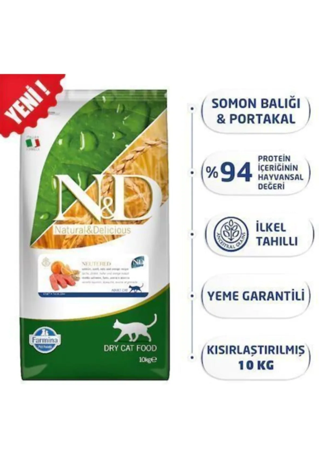 | N&D Kısırlaştırılmış Somonlu Kedi Maması 10 kg Somon, kılçıksız buğday, yulaf ve portakal. Yetişkin kediler için formüle edilmiş tam mamadır. İçindekiler kurutulmuş somon balığı proteini (%24), somon balığı (%18), kılçıksız buğday (%10), yulaf (%10), kurutulmuş tavuk proteini, kurutulmuş yumurta, kurutulmuş pancar posası, tavuk yağı, balık yağı (somon balığı), kurutulmuş yonca, kurutulmuş havuç, inulin, fruktooligosakkaritler, maya ekstraktı (mannooligosakkarit kaynağı), kurutulmuş tatlı portakal (%0.5), kurutulmuş elma, kurutulmuş ıspanak, fisilyum kabukları ve tohumları (%0.3), kurutulmuş nar, kurutulmuş yaban mersini, sodyum klorür, kurutulmuş bira mayası, zerdeçal (%0.2), aloe vera ekstraktı. ANALİTİK BİLEŞENLER Ham protein %38.00; Ham yağlar %10.00; Ham lifler %5.50; Nem %8.00; Ham kül %8.30; Kalsiyum %1.10; Fosfor %0.90; Magnezyum %0.08; Omega-6 %1.80; Omega-3 %0.55; DHA %0.25; EPA %0.15; Glukozamin 1200mg/kg; Kondroitin sülfat 900mg/kg. |